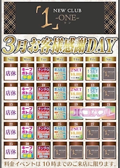 おはよー☀️ 今日から3月だね🌷 やっと極寒な季節が終わってくれて嬉しい☺️ そいえば成田 CLUB ONEではこんなイベントカレンダーができました!😳✨ 10時までに来てくれた方限定らしいのでぜひ早い時間に遊びに来てください☺️ JKコスプレはちょっときついけど笑 お得なイベント盛りだくさんなのでぜひ今月も成田 CLUB ONEよろしくお願いします✨