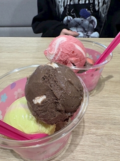 こんばんは𓂃🫧 みはねです🪽🫧 ちょっと前まで青髪で見た目星屑の王子様の天使レイ(超kawaii)に似ていた女の子とお買い物デートしてきました👧 スーツ必要でひとりじゃ決めれないと思ったので着いてきて貰いました✨ おかげですぐに決まりました!助かる🙏😭 本日のもうひとつの目的サーティワン食べてプリクラ撮ろうと思ったらJKいすぎて退散しました😭 サーティワンいつもは定番選んでしまうけど今回は期間限定のやつも食べましたチョコの方は期間限定じゃないけど初めて食べましたマシュマロもちもちで美味しかったです😋 私と同じく厨二病患者の友達はその名にふさわしいピアスを買ってました草 その後成田駅に帰ってきて沖縄料理屋さんに行きました🌺🌴らっきょ美味しかったです 2人とも寝不足なので早めにおうちに帰ります🏠おやすみなさい( ¯꒳¯ )ᐝ