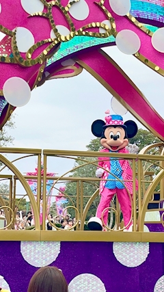 続いてミニパル限定パレードミニー@ファンダーランドのレポート✧ \( °∀° )/ ✧ 1時間前くらいから場所取りしてミッキー停止ポジの3列目取れたよ☺️✨ お城周辺を何周もしてくれて停止あったりするから断然オススメです(⌯˃̶᷄ ⁻̫ ˂̶᷄⌯) ダンサーさんの衣装もキャラクターたちもかわいすぎた!😍✨ このパレードとレストランがいちばんの目的だったから無事成仏😇💓 ピンクでキラキラで懐かしい曲も多くてずっとぎゃーぎゃーしてた🤣 やっぱりミッキーはスター感すごいよね!😍✨ 心が浄化されましたありがとうミッキー🥹✨ ミニーのパレードは3/2までだよ🎀 近々ランド行く人はぜひみてね😍💓 今日も出勤✨よろしくね🫶