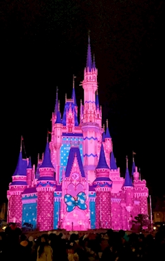 さっきの続き🎀 ミニーちゃんイベント限定のプロジェクションマッピングも今の時期限定で夜開催してるんだよー😍 ミニーちゃんパレードの音楽と共にお城がピンクになってめっちゃかわいいの☺️💓 ちなみにキャラクターは出てこなくて、お城がピンクになったりリボンがついたりするだけだからReachみたあとだと物足りないかもだけどとにかくかわいい!💓 いろんなパターンになって15分くらいかな?お城の前で楽しめるよ🎀 1日3回、夜にやってるから行く人ぜひみてね⸜( *´꒳`*)⸝ 今日もよろしく☺️✨
