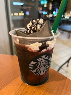 スタバの新しいメニュー🫶 アサイーベリーフラペチーノ飲んできたよー🐈⬛🧡 黒猫なのかわいいっ😍 わたしの家にも黒猫ちゃんいるんだ☺️ 明日のBlogに写真載せよーっと🐈⬛💓 明日からまたよろしくです( •ω•ฅ♡