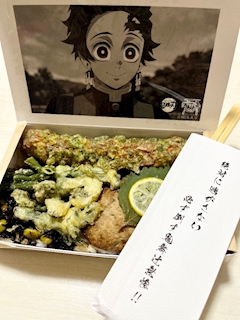 昨日の鬼滅弁当🫶 これ2500円🤣🤣 炭治郎バージョンと2つで5000円!😂 お高いお弁当はちゃんとおいしかったです🥹💓 今日もよろしくです✊